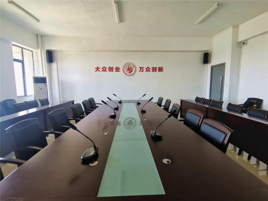 来到三楼会议室,“大众创业,万众创新”尤其醒目。在这里,采用AT-265音箱作为主扩音箱,为教职工日常会议的开展提供清晰听音效果,让更多创新教育的思维碰撞出奇妙火花。