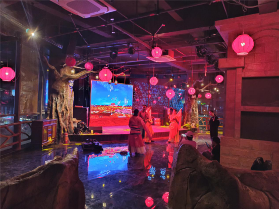 此外,值得提及的是,餐吧引入使用了Motivity的MTH P2.5室内全彩LED显示屏,置放在舞台中央,用于显示及播放现场节目的文字、图像、视频等。