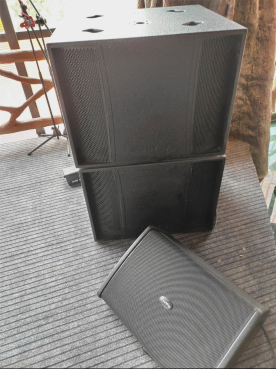 舞台两边还各落地叠加摆放两只AT-18B超低音箱,使得音乐更具震撼力,现场氛围更为浓烈。为让表演者听清细节,舞台上增加了两只NX-312M作为流动返听。另外,吊挂两只AT-08作为固定返听提供全场声音返送。