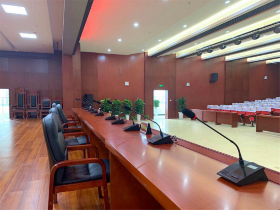 法院审判庭固然以审判和会议讨论为主,对语音清晰度要求比较高,所以增设了一套MotiVity的数字手拉手会议系统,包含:MT1000S纯讨论型会议主机、MT480VC鹅颈话筒1支、MT480VD鹅颈话筒8支。会议主机具有反馈抑制功能,可以避免声音回授、啸叫的产生,充分保障审判及会议的流畅举行。