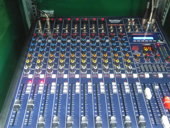 当需要展示灯光秀的时候,只要灯光控台传输信号触发到灯光控制室的电脑,电脑实现自动播放音乐,音频信号就会传输到调音台的输入端位置,从而实现音频的同步输出。