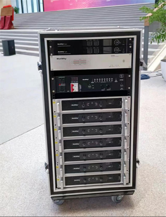 该流动系统配备了CP382电源管理器、DP8080数字音频处理器、MD1810数字调音台,为系统扩声质量和安全性能提供有力保障。