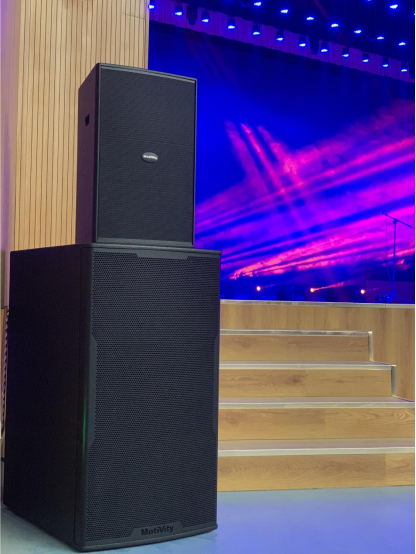 2只AT-28B超低频音箱补充超低部分,与之叠放在舞台两侧,进一步保证音效和足够的音域范围,使整个系统更加完整和立体。