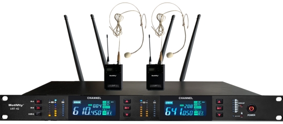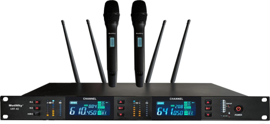 为了保证发言的顺利进行,配备了真分集无线话筒一拖二URT-42(手持和腰包,各两套)。URT-42采用真分集接收机,双通道独立选讯系统,信号更稳定;具有精准的电子音量控制技术,话筒接收距离多档可调,隐藏式锁键功能,防止误操作。