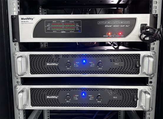在音响系统的驱动与处理环节,通过C9.2功放、Stride-8.8网络音频矩阵以及MA1210-F调音台,三者协同工作,发挥着不可或缺的作用,共同为音响效果提供了强大的支持。