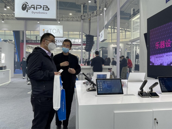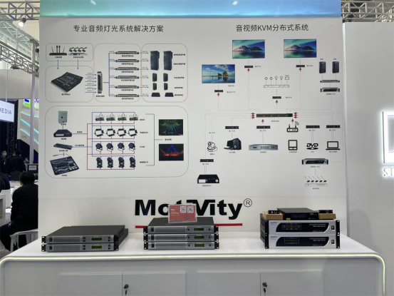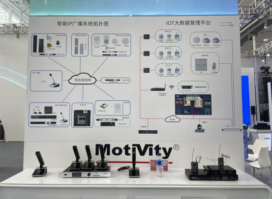 除了会议系统,MotiVity静态展示区,为大家呈现“智能IP广播系统”、“IOT大数据管理”、“专业音频灯光系统”、“音视频KVM分布式系统”四大解决方案,以及陈列G-T43/G-T44会议话筒系统、AU4100/AU4200无线话筒系统、D系列功放、Stride数字音频处理器。