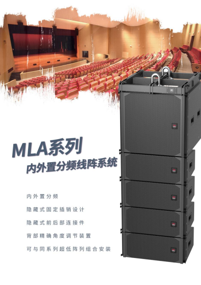 MLA系列线性阵列扬声器系统,融入线性阵列扬声器系统设计理论,使各单元之间中低频充分耦合,中高频部分极大的降低梳妆滤波效应,具备能量足、辐射距离远、指向性控制好的特点。