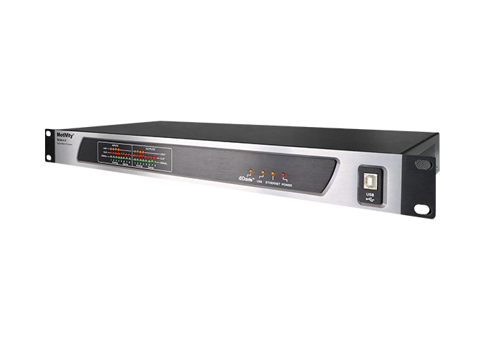 产品功能:32位DSP芯片处理,48kHz采样率,24bit AD/DA转换。4路独立平衡Line/MIC输入、4路平衡输出本地每输入通道可选择独立话放带+48V幻像供电,话放增益可单独调节。可通过选配DT44A型网络音频插卡,扩展4路Dante输入、4路Dante输出;输入通道处理部分包含低切,反馈抑制(5级),5段参量均衡,噪声门,增益,静音,相位,连动调节,音量编组调节等处理功能。输出通道处理部分包含分频,7段参量均衡,增益,静音,压缩/限幅器,相位,延时,连动调节,音量编组调节等。具备输入输出两组Subcontrol集控功能;所有输入输出之间可以自由进行矩阵式分配。所有参量均衡的频点、增益和带宽可调,其中增益步距为0.1dB,类型可选择:PEAK、H-SHELF、L-SHELF、Low cu