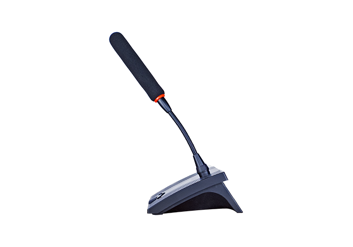 Digital intelligence智能数字化设计控制电路。单元为无源设备,由系统主机供电。输入电压为24V,属安全范围高保真单指向性电容咪芯,声音还原、清晰度高、噪音小;拾音头物理长度达到12cm;配置2.4寸高清彩色显示屏,具备发言计时功能,系统控制信息状态一览无余话筒头部带发言灯圈,可显示单元发言、关闭状态话筒按键采用高品质长寿命,防潮防尘静音开关,杜绝出现脉冲电流噪音主席单元有优先发言权,可随时关闭其他列席单元。支持多个主席单元,连接时不受位置限制可任意安装,具有全权控制会议秩序的优先功能,可控制会议气氛。采用防干扰电路设计,可防止手机等电子产品的干扰。双喇叭设计,可用于会议扩音及播放会议背景音乐。左侧设计有音量控制旋钮,可调节音量大小。左侧设计有3.5音频输出和输入接口,接入设备可以代替会议咪发言