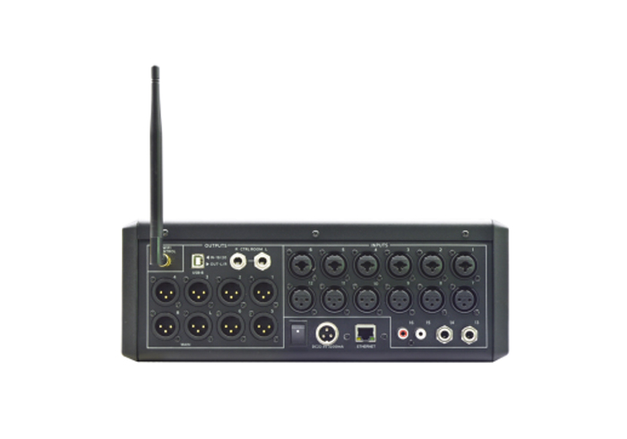 音频输出:共14路输出,1组L/R立体声主输出(XLR平衡接口),6路BUS输出(XLR平衡接口),1组立体声监听输出(1/4”TRS立体声接口),2组立体声数字输出(USB盘录音、USB声卡)