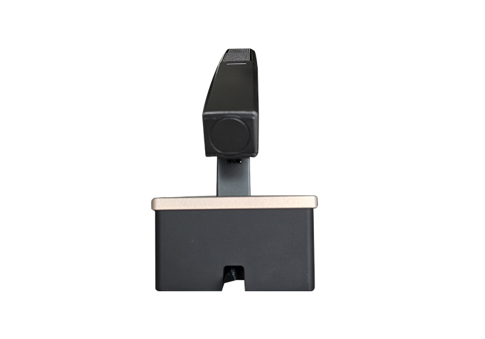 采用压铸式铝合金多菱角方形麦克风,通过固定接头连接话筒底座,可调俯仰角度,整体稳重,高档大气