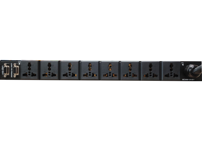 技术参数:额定总电流:40A单路额定输出电流:16A额定总功率:8000W单路额定功率:2500W工作电压:AC 90-267V/50-60Hz通道控制:背板8路可控,前面板2路常供电接口动作延时:off/1-999秒可调显示屏:2寸彩色液晶显示屏,分辨率376*240可通过显示屏实时显示日期时间、电流、电压、功率、通道开关状态等;具备过压保护、过流保护、欠压保护功能及定时功能,可设置保护阀值;可根据日期时间设置定时开关功能,可支持20个定时任务;中控接口RS232:后置RS232中控接口支持屏幕锁定功能,避免误操作;级联RS232:支持多台设备级联,通过RS232联机(最长距离10米);支持断电记忆及上电自启功能,断电数据可自动储存;支持中英文两种语言显示;支持用电量单次/多次累计及用电时间累计;机箱高度:1